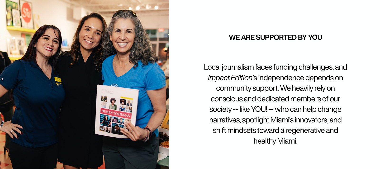 Impact.Edition is a Miami-based nonprofit publication dedicated to sustainable development and collective impact, with a mission to elevate the voices of local changemakers advancing social & climate justice in our communitites.